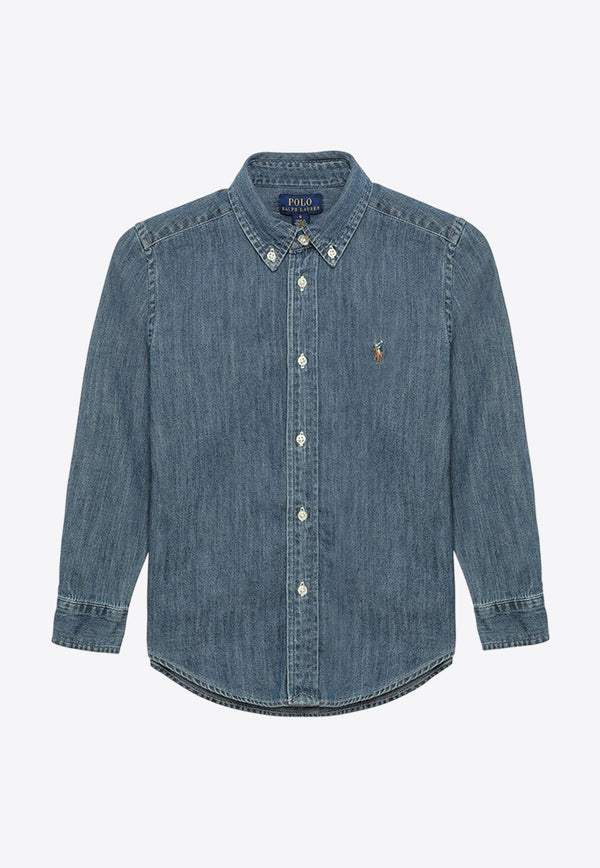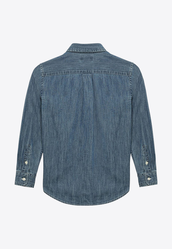 Boys Logo Embroidered Denim Shirt