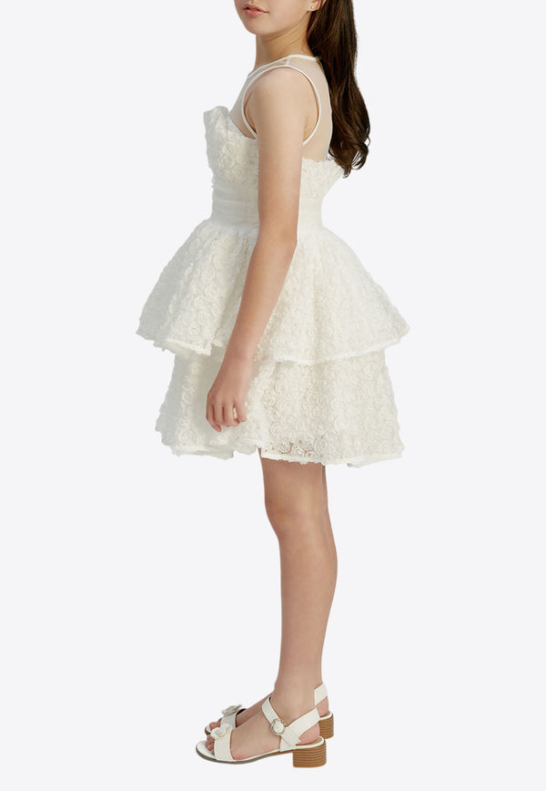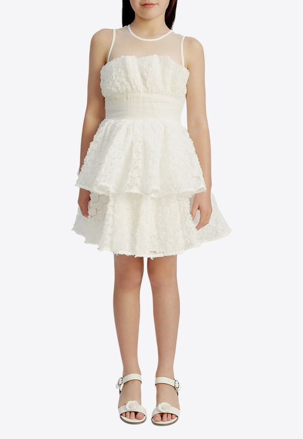 Girls Flower-Appliqué Silk Organza Dress