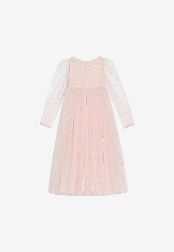 Girls Sequined Logo Rose Print Dress